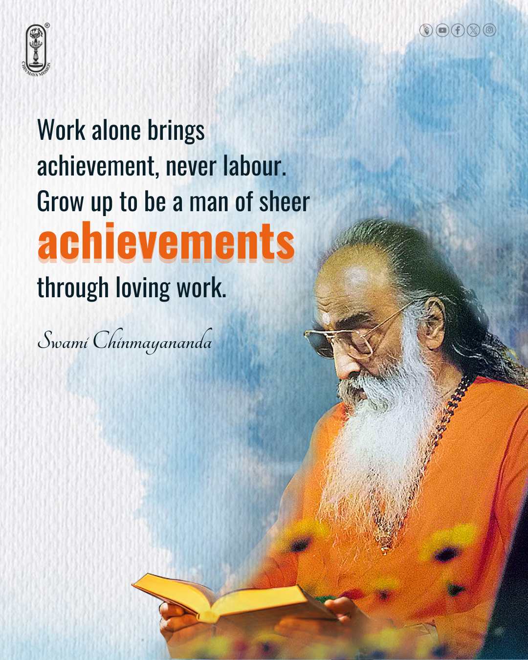 We generally have a give-and-take attitude. When you perform an action, put a question to yourself: “What will it bring to me? Why should I do it?” This is a question which always comes up in one's mind whenever one is asked to do anything. The action must produce a result, which means to say we are always accustomed to performing actions with an ulterior end or a motive, and never in the spirit of karma yoga. Karma yoga is action which is an end in itself because it is the spirit manifesting itself. The spirit is an end, and not a means.